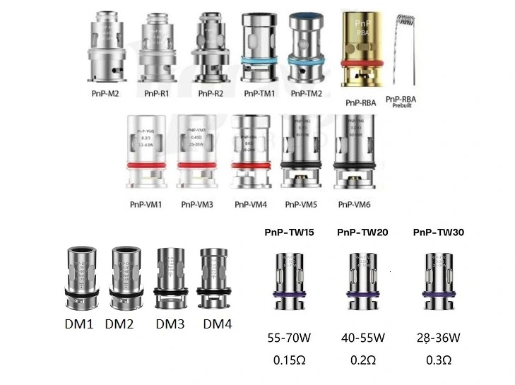 0,15ohm, 0,2ohm, 0,3ohm, 0,45ohm, 0,8ohm